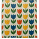 A stylized tulip pattern composed with sculptural clarity and rhythmic precision. Bold blooms in red, yellow and blue are arranged in a balanced grid over a soft beige background, creating visual harmony through repetition and contrast. The design evokes mid-century modern sensibilities with its clean lines, geometric flow, and emotionally resonant color palette.