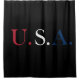 Douche rideau de salle de bain décorative et décoration maison accessoire imprimé avec U.S.A. Rouge blanc et bleu Lettering Design illustration par TheFabricSeal imprimer sur demande shop à Zazzle.com #ZazzleMade https://www.zazzle.com/store/thefabricseal Tous les drapeaux des pays du monde entier sont si beaux y compris le drapeau inspiré pour ce design des Etats-Unis d'Amérique et de l'équipe U.S.A. avec un beau rouge, blanc et bleu couleur arrière - plan noire osseuse. Notre boutique présente également les collections de produits de la marque américaine Stars and Stripes avec une couleur arrière - plan noire et blanche. Regarde-les.