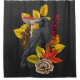 Illustration peinte à la main d'un corbeau et d'automne botaniques-feuilles, champignons et baies