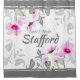 Illuminez et personnalisez votre salle de bain avec ce rideau de douche élégant dans des nuances de gris. Des bandes sombres bordent le haut et le bas, tandis que la grande étendue centrale est blanche. L'espace est rempli de vignes feuillues dans diverses nuances de gris et les coins alternés présentent des arrangements de fleurs de cosmos roses vaporeuses qui se faufilent à travers les blocs de couleur gris. Ajoutez vos prénom et nom dans deux teintes grises profondes et coordonnées. Parfait pour votre décoration intérieure ou comme cadeau de mariage pour les jeunes mariés ou les célébrations d'anniversaire.