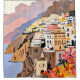Côte d'Amalfi, Peinture Nature Paysage Voyage, Été Romantique Pittoresque Pastel Places colorées, Europe Exotique Montagnes Vallée Plage Océan Illustration par 83 Oranges Uma Gokhale.