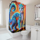 Ce rideau de douche est habillé d'une créature artistique.