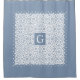 Motif damassé blanc et bleu poussiéreux et rideau de douche monogramme. Il y a des bandes bleues poussiéreuses avec des arêtes de pétoncles autour tandis que dans le centre il y a votre monogramme. Vous pouvez le personnaliser avec votre nom.