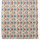 Cette belle conception géométrique présente des tons coralliens, turquoises, bleus-gris, prunes, et jaunes, le tout dans les tons noirs. Les couleurs ont un aspect déprimé/texturé.