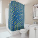 Le rideau de douche montre le design "Density" en bleu lapis et jaune primrose. Pour la personnalisation des couleurs et les conceptions personnalisées recherchez en utilisant le bouton de contact.