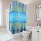 Rideaux de douche de bain turquoise, vert et blanc à rayures. Un design motif moderne, chic et contemporain, bleu, monogrammé, pour agrémenter votre décoration pour la salle de bain principale ou d'invité. Changez le monogramme, la couleur arrière - plan, ou simplement profiter du motif. Des articles de toilette gratuits, des matelas et des accessoires sont disponibles.