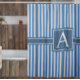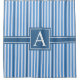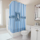 Ce mignon rideau de douche à rayures bleues et blanches de différentes tailles dans une motif à rayures simple et moderne. Personnalisez avec votre initiale à l'aide de l'outil d'édition de la liste. Il est parfait pour une décoration chic et moderne de salle de bain, ou juste pour se ressourcer toute l'année avec un peu de couleur pendant la douche du matin. Il serait également mignon pour la salle de bain d'un garçon.