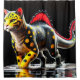 Ce rideau de douche a une créature de dinosaure dessus.