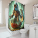 Ce rideau de douche a une créature de dragon qui s'y accroche.