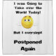 Rendre le temps de bain plus amusant avec cette citation amusante. Modifiez la couleur de l'arrière - plan pour personnaliser cette conception en fonction de votre configuration. J'allais prendre le contrôle du monde aujourd'hui - mais j'ai trop dormi - repoussé...Encore une fois ! Oh bien ! Il y a toujours demain, n'est-ce pas ? Peut-être devrais-je mettre une alarme cette fois ! Bon appétit !