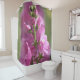 Un rideau de douche fleurie rose pâle de couleur mauve hollyhock jardin apportent l'amour du jardin à l'intérieur.