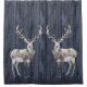 Christmas at Midnight Collection Il s'agit d'un rideau de douche sombre et magnifique qui fait partie d'une plus grande salle de bain et collection de décoration maison que vous pouvez profiter pour les vacances de Noël. Associez ce rideau à la natte et à la serviette de bain pour un lifting nostalgique et unique pour votre salle de bain ! Une paire de rennes se tient contre un arrière - plan bleu nuit foncé et la neige tombe autour d'eux. Le design est audacieux, mais classe et haut de gamme. Ça ne fait pas de Fêtes de Fête... ça n'en fait qu'une allusion !