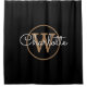 rideau de douche monogramme noir et or classique. Vous pouvez personnaliser le nom, monogramme et customiser la police et les couleurs pour créer votre propre design unique. Conçu par Thisisnotme©