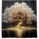 This image depicts a majestic tree with glowing, golden branches that extend into the night sky. The tree's roots are reflected in the calm waters below, creating a mesmerizing reflection. The scene is set against a dark, starry background, giving it an ethereal and magical atmosphere. The overall composition evokes a sense of wonder and tranquility, making it perfect for a wall mural or canvas art piece.