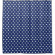 Le rideau en douche avec un motif de blanc se tient le premier rôle sur un arrière - plan de bleu marine.