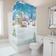 Rideaux De Douche Evening winter village landscape with snow covered