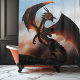 Une peinture de fantasy dramatique et puissante représentant un dragon féroce de couleur ambre aux ailes déployées, avec des reflets lumineux et une pose autoritaire sur un ciel bleu fumé. Parfait pour les amateurs de fantasy, les passionnés de dragons et les fans d'art de créatures mythiques et de collections sur le thème de la fantasy épique.