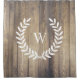 Des lauriers de blé blanc et une lettre monogramme sur une ferme rustique chic planches de grange en bois clair!