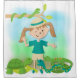 Un joli rideau de douche pour les filles qui aiment les reptiles et les randonnées safari ! On y trouve une fille avec un casquette safari, un serpent enroulé autour d'une branche d'arbre, un serpent à pois de polka, un lézard et une tortue !