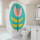Un design d'art abstrait des années 1950 avec une fleur rose saumon avec des feuilles verts chartreuse contre un soleil turquoise, fait dans le style moderne du milieu du siècle.