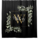Rideaux De Douche Fleurs de verdure à monogramme en or noir