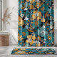 Rideaux De Douche Floral Doodles Aqua Teal Mustard Black White