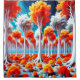 Ce rideau de douche a une forêt sur elle.