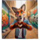 Ce rideau de douche a un renard qui fait des mains cardiaques sur elle.