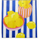 Une vie morte vibrante avec des citrons jaune vif dans des bols roses et oranges ludiques. Les rayures bleues et blanches de l'arrière - plan ajoutent une touche méditerranéenne fraîche. Une parfaite palette de couleurs pour les amateurs d'agrumes et d'art moderne !
