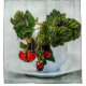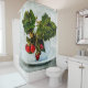Framboises. Une soucoupe une tasse de thé et un amas de framboises fraîches avec un bouquet de feuilles verts. Simulation de peinture à l'huile à partir d'une photographie. rideau de douche pour décorer votre salle de bain pour le plaisir et la bonne humeur.