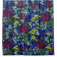 L'aquarelle originale peint de brillants papillons bleus se cachant en vue au milieu d'un bouillonnement de Fuji Chrysanthèmes rouges en rubis, des grappes de champs sauvages Des salopes et des vagues gracieuses de vignes vertes propres et des feuilles à la chaux font de ce rideau de douche en tissu un point fort !