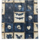 Rideau de douche motif en patchwork gothique foncé à la texture denim, avec crânes, chauves-souris, toiles d'araignée et squelettes en carré cousus. Parfait pour les amateurs de décoration gothique, les cadeaux éffrayants rustiques et le style de fête d'Halloween.