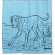 You see what you get: A Great Dane drawing printed with black on a blue shower curtain