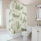 A classic green toile seamless pattern shower curtain featuring vintage sleigh rides through a snowy forest. This elegant design depicts horse-drawn carriages, evergreen trees, and winter landscapes rendered in fine line art on a soft cream background. This pattern evokes timeless nostalgia and countryside charm.