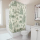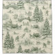 A classic green toile seamless pattern shower curtain featuring vintage sleigh rides through a snowy forest. This elegant design depicts horse-drawn carriages, evergreen trees, and winter landscapes rendered in fine line art on a soft cream background. This pattern evokes timeless nostalgia and countryside charm.