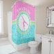 Le showercurtain décoré d'un monogramme de la gymnastique de la belle fille avec un cool tri a coloré la conception en pastel. Il y a un rose doux, un beau vert, et un aqua incroyable dans cette conception. Employez le gisement fait sur commande des textes pour ajouter un nom avant que vous passiez commande. Ou si vous préférez, laissez le blanc de gisement des textes pour aucun nom.