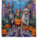 Les adorables Kelpies australiennes, habillées de costumes d'Halloween ludiques, portent des seaux citrouilles tout en faisant des tours ou en traitant sous le ciel illuminé par la lune. Ce design festif met en valeur l’esthétique de la race, les yeux attentifs et l’esprit de travail, capturant parfaitement l’atmosphère éffrayante et amusante de la nuit d’Halloween. Une célébration animée pour les amoureux de les chiens et les fans d'Halloween.