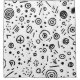 A whimsical black and white seamless pattern shower curtain filled with hand-drawn abstract doodles and playful marks. The design features concentric circles, spirals, dots, dashes, plus signs, and starbursts scattered across a white background. Its lively, modern aesthetic brings a fun and artistic touch to any space.