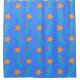 Rideau de douche décoratif avec des nuances de détails bleus, orange et rose.