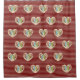 Ce rideau de douche présente le design original de HoMeArts des lovebirds de Robin bleu oeuf et vert avocat entourés de branches et de baies rouges dans un coeur jaune citron se démarque d'un arrière - plan de rayures rouge foncé et crème.
