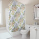 Un rideau de douche floral design et ludique avec des fleurs d'orange glacé et de citron vert et noir épais