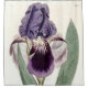 rideau de douche avec tableau botanique d'un iris violet.