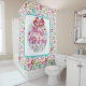 Ce rideau de douche rétro de Noël a une couronne d'aluminium peint à la main avec des ornements rétro classiques, starburst, symboles atomiques, mélanger le motif de bord de couronne et le salut de vacances Joyeux Noël. Personnalisez ce rideau de douche avec votre propre message de vacances. Ce rideau de douche est un excellent moyen d'égayer votre décoration rétro pour la période de Noël des Fêtes.