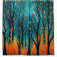 Une belle peinture expressionniste d'une forêt turquoise en automne, juste avant la première chute de neige. Il a l'air extraordinaire sur une toile si grande comme un rideau de douche.