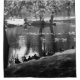 La vie du parc - Scène de paysage en noir et blanc photographiée dans le parc Rams Woerthe, Steenwijk, Pays-Bas montrant un étang avec des oiseaux vus à travers quelques arbres.