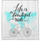 Citation inspirée - la vie est un beau tour. Affiche moderne manuscrite de calligraphie avec la carte bleue du monde d'aquarelle et la bicyclette tirée par la main. | Bigstock® - tous droits réservés.