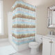 Un paysage d'aquarelle d'un cabine d'escapade de lac dans les bois orne ce rideau de douche!