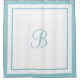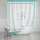 Ajoutez une élégance classique à votre salle de bain avec ce rideau de douche monogrammé stylé. Ce rideau de douche blanc sophistiqué est encadré d'un design de bordure stratifié contemporain chic hôtelier. Personnalisez la lettre de monogramme de script avec l'initiale de votre prénom ou nom de famille. Palette de couleurs bleu aqua et blanc. Veuillez visiter notre magasin pour des options de couleurs supplémentaires.