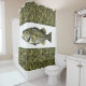 Un rideau de douche pour la personne qui aime pêcher pour trophée basse à grande bouche. L'arrière - plan est un motif de camouflage vert.