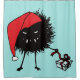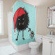 Drôle rideau de douche de Noël maléfique avec un insecte de grincement de bande dessinée noire défaisant un cadeau de Noël. Ce rideau de douche maléfique ajoutera un peu de plaisir à votre décor de Noël.